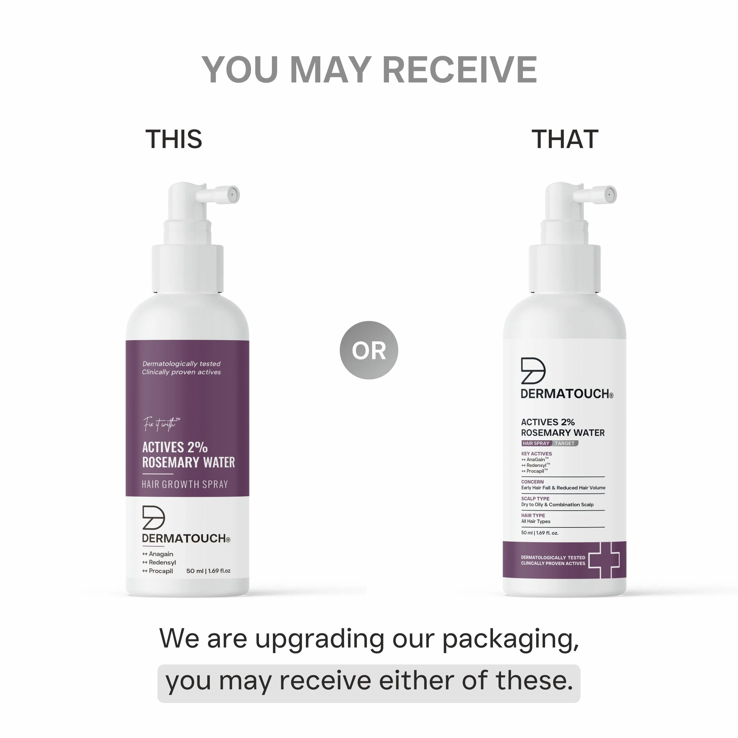 Dermatouch Actives 2% Rosemary Water Hair Growth Spray is a dermatologist-backed formula designed to promote hair growth, reduce hair fall, and revitalize the scalp. Infused with Rosemary extract, Redensyl, Anagain, and Procapil, it strengthens hair follicles and stimulates growth for thicker, healthier hair. It also supports scalp health by improving blood circulation, reducing dandruff, and enhancing the natural vitality of hair.